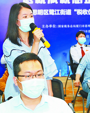 “拋磚引玉”的解讀之后,活動進入重頭戲——互動問答環(huán)節(jié)。除了現(xiàn)場宣講的三位宣講骨干外,來自思明區(qū)稅務局不同領域的業(yè)務骨干也來助陣,現(xiàn)場逐一解答企業(yè)問題。